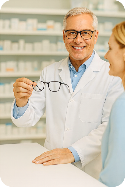 Grazie alla collaborazione con i farmacisti, l’ottico optometrista ti segue in tutto il percorso,